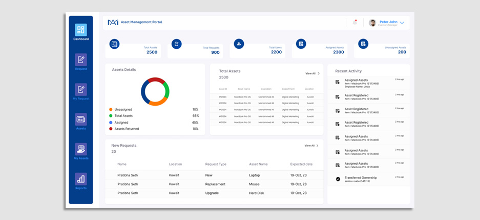 The client required a comprehensive Asset Management System to efficiently track, manage, and monitor all organizational assets in real time. Their key requirements included an intuitive web portal, user-friendly dashboards, secure data management, role-based access, automated reports, and seamless integration to improve asset lifecycle visibility, operational efficiency, and decision-making.